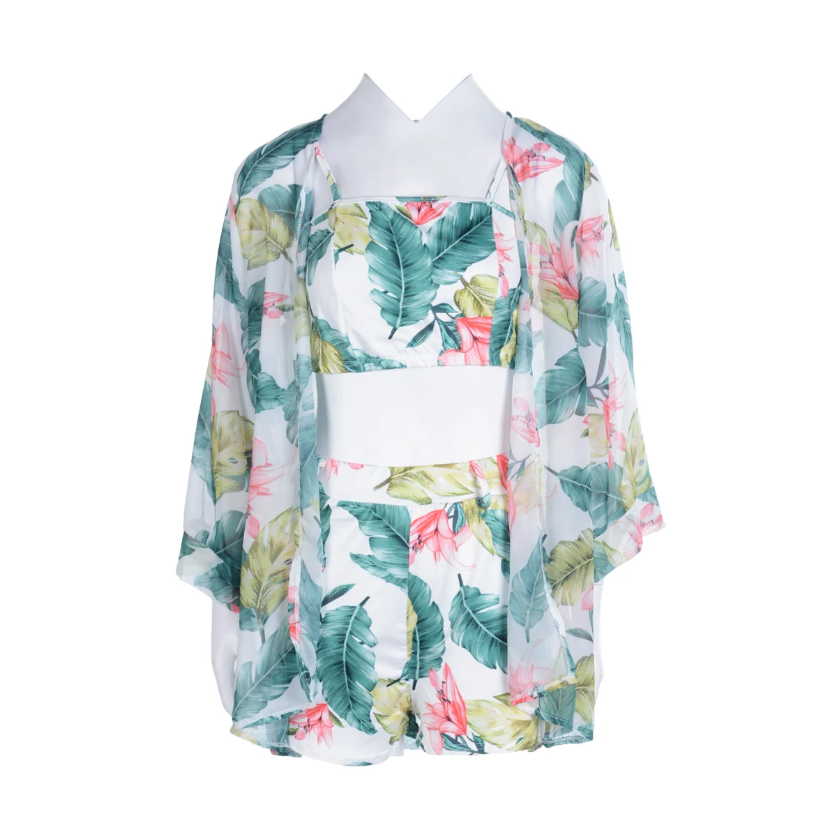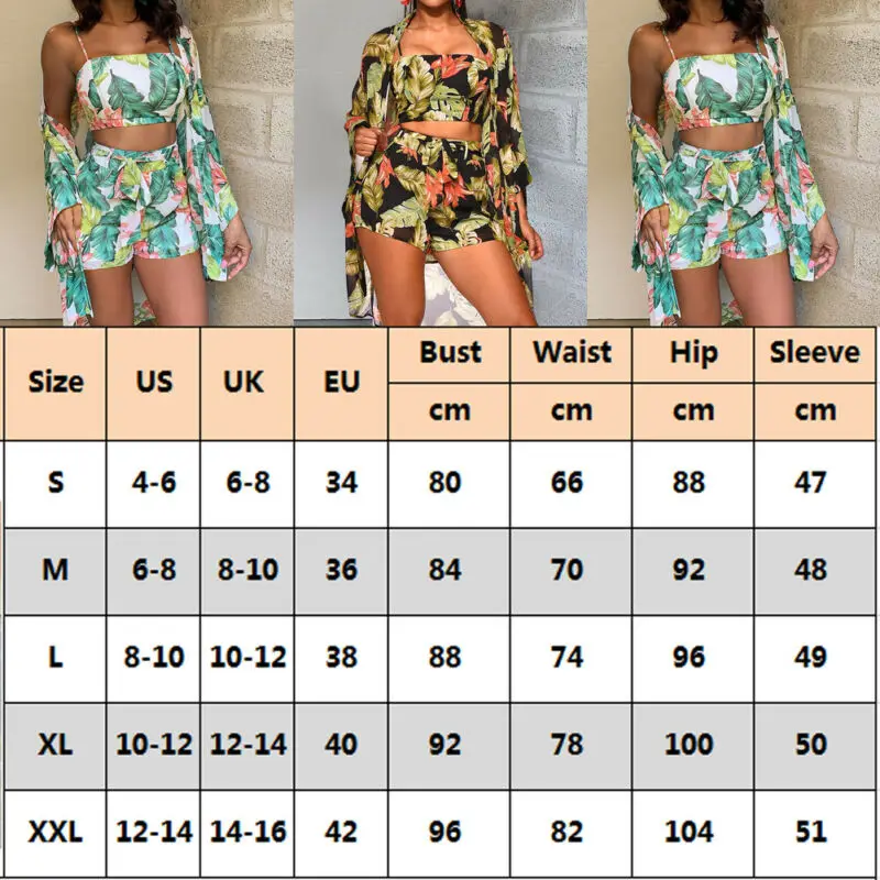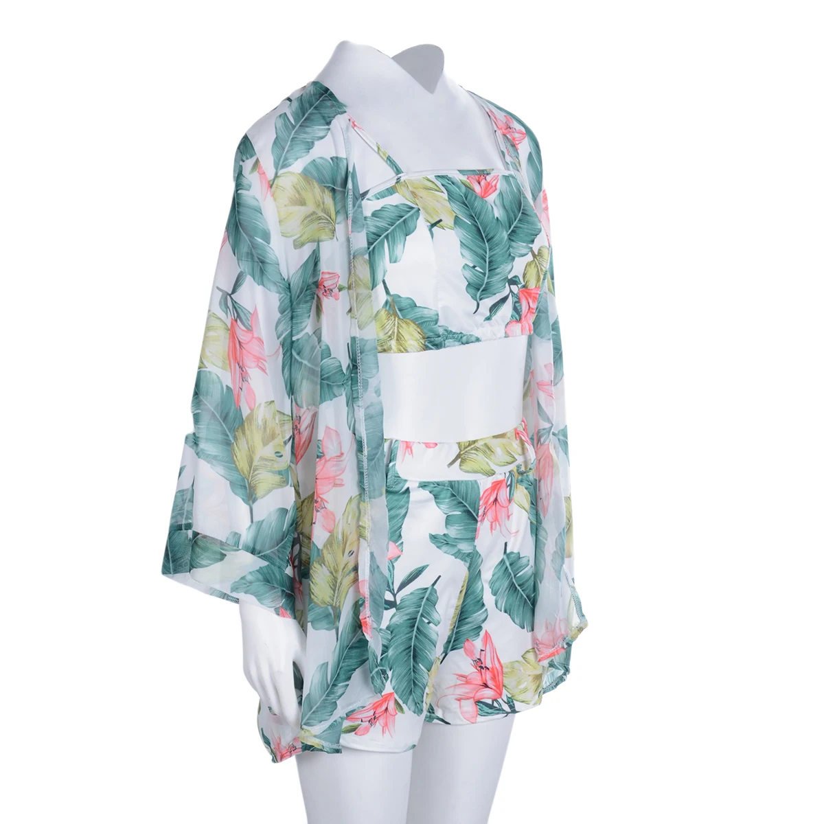 Летнее женское платье в стиле бохо NEDEINS с цветочным принтом, кардиган, женское пляжное платье, комплект из трех предметов, повседневная блузка + укороченный топ + шорты