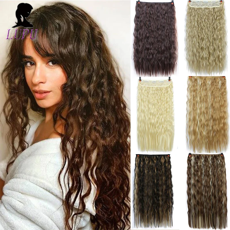 LUPU 22-дюймовые Синтетические длинные волнистые 5 зажимов для наращивания волос, высокотемпературные волокна, искусственные волосы