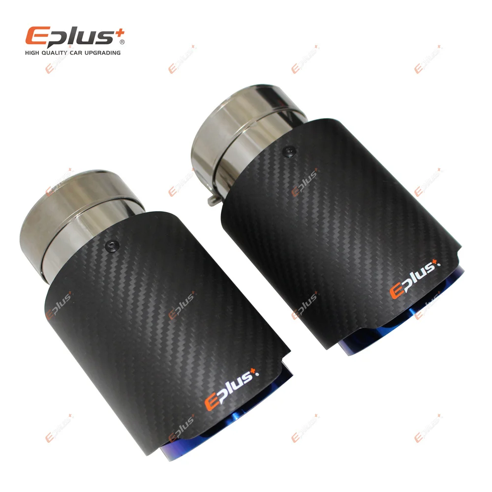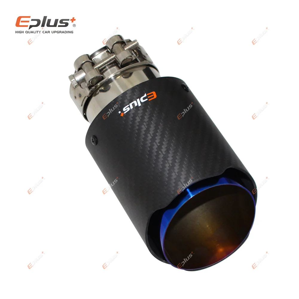 Наконечник выхлопной системы EPLUS, универсальный Насадка На глушитель из углеродного волокна, из нержавеющей стали, синего цвета, для Akrapovic