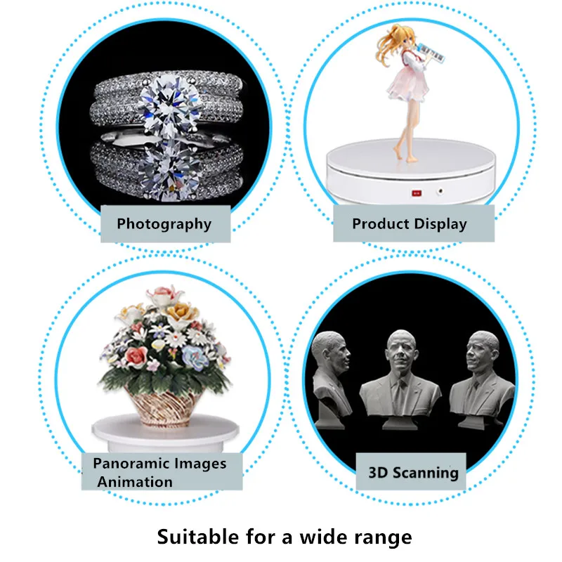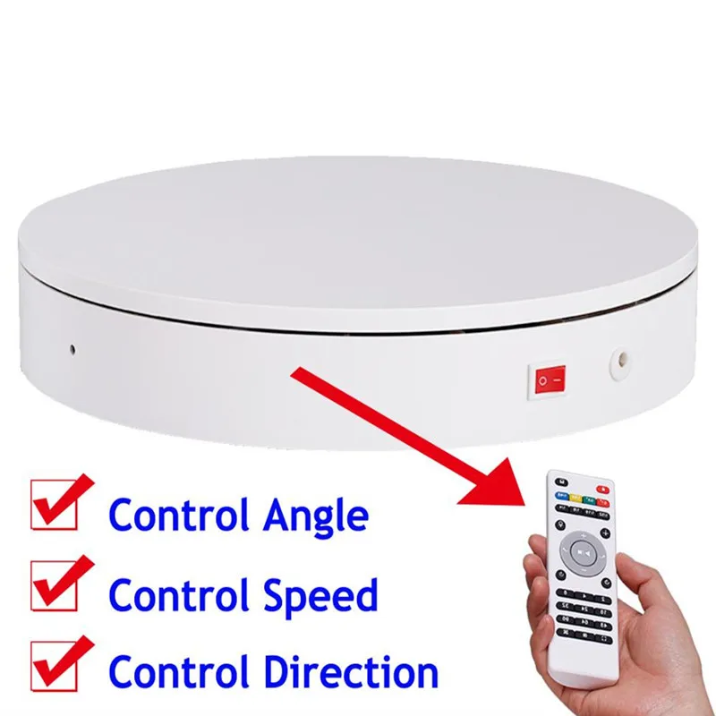 360 градусов вращающийся стол с электрическим приводом, стенд, пульт дистанционного управления направление/угол/скорость, непрерывный режим вращения и прерывистый режим вращения, 3D сканирование, фотография, дисплей продукта, создание панорамных изображений и анимации и т. Д.