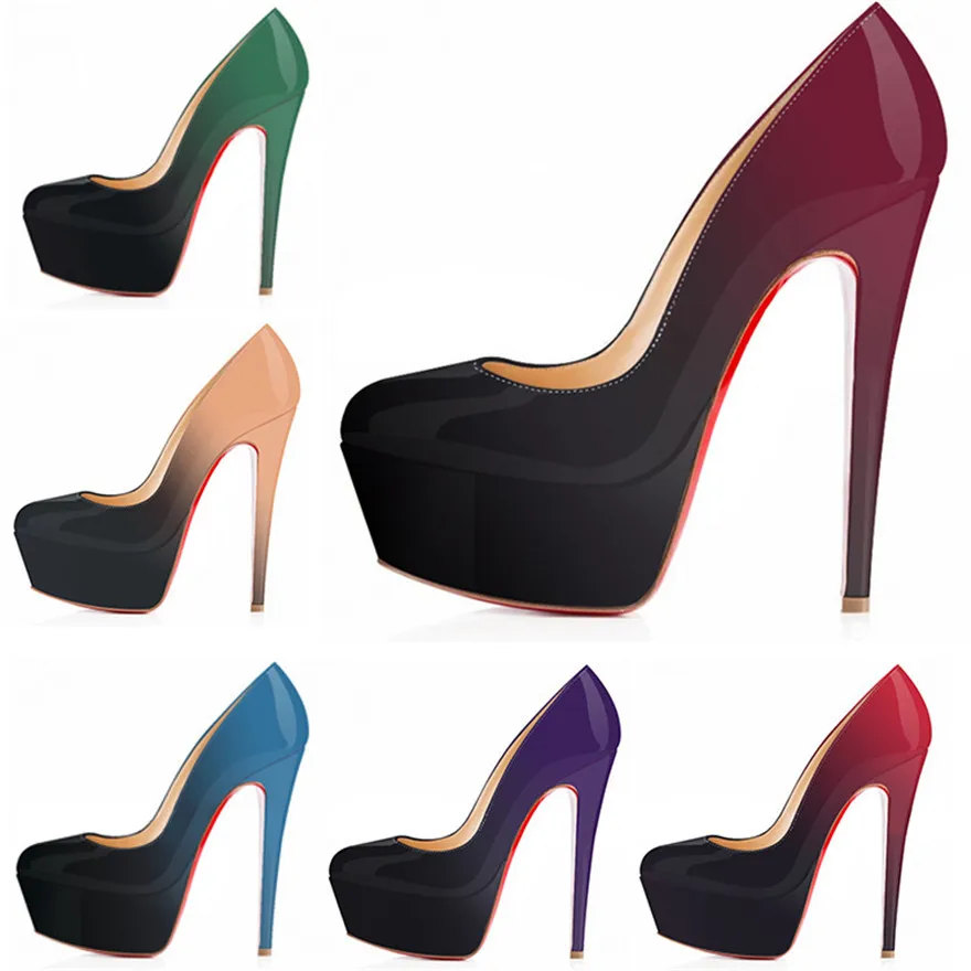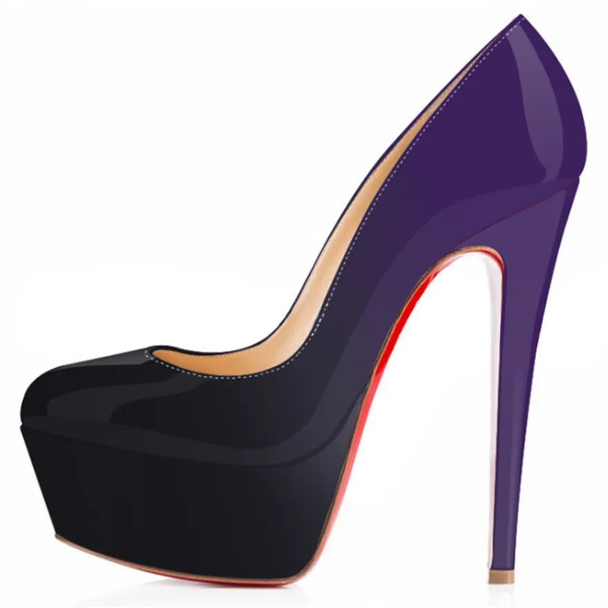 Женская обувь из лакированной кожи с градиентом; Новинка 2021 года; Модные туфли-лодочки на очень высоком каблуке с острым носком; Женская пикантная обувь для вечеринок