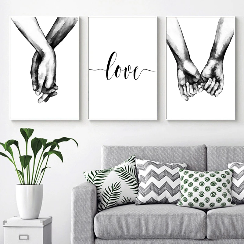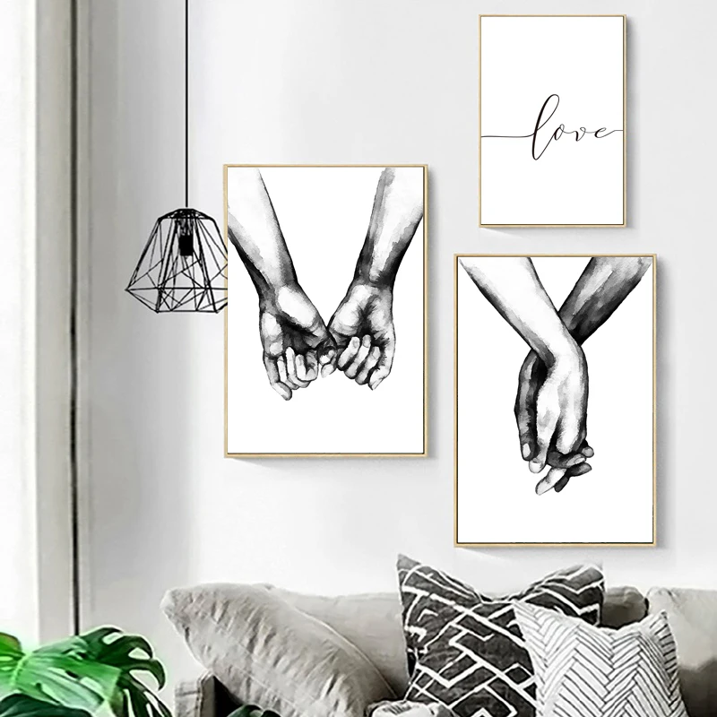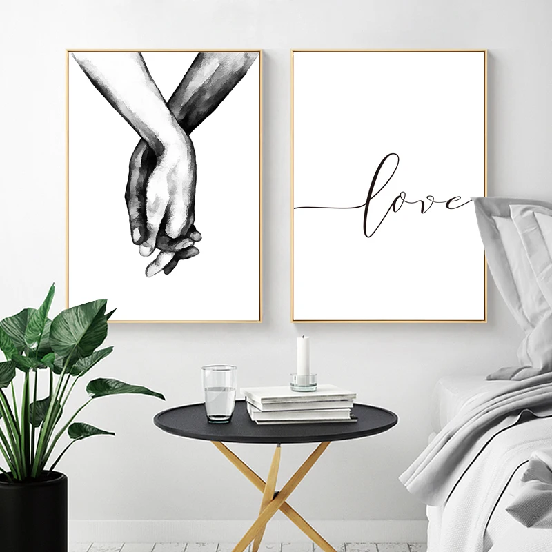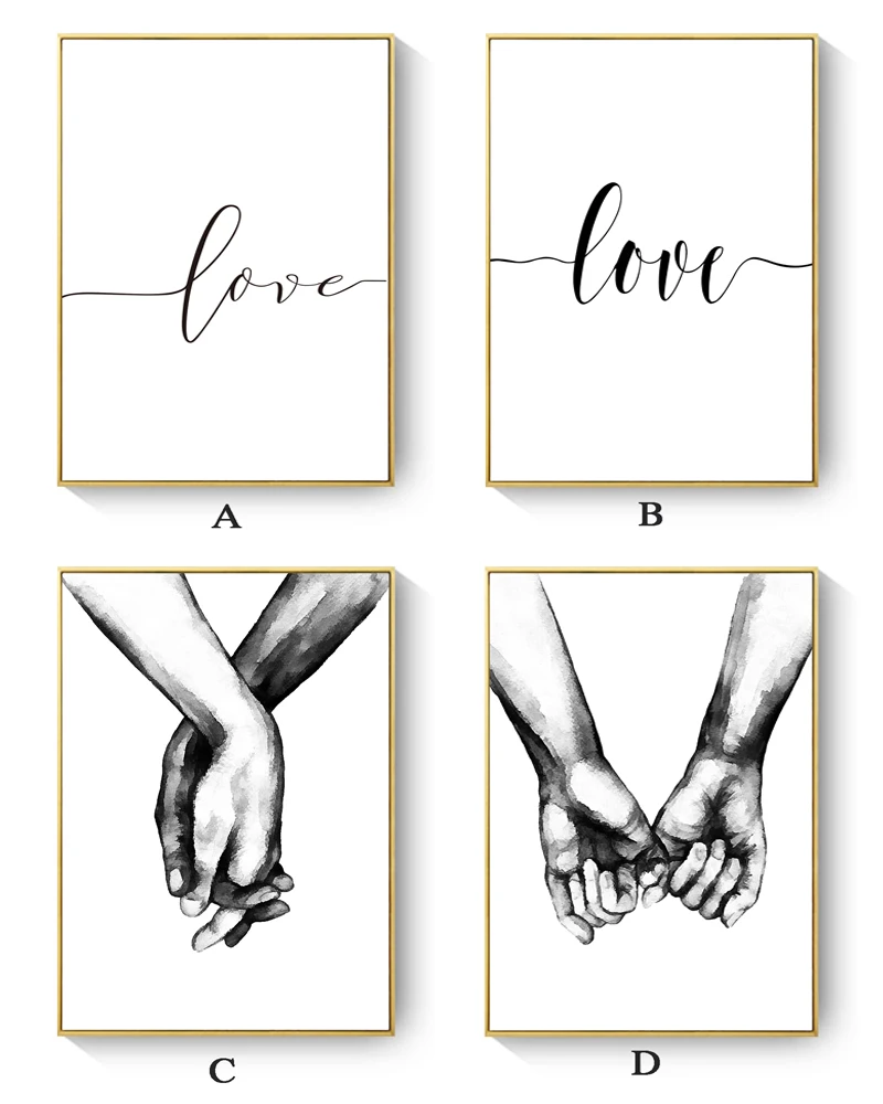 Настенные картины в скандинавском стиле, постер с надписью Love, черно-белая Настенная картина с изображением влюбленных пар, Минималистичная Печать на холсте для гостиной