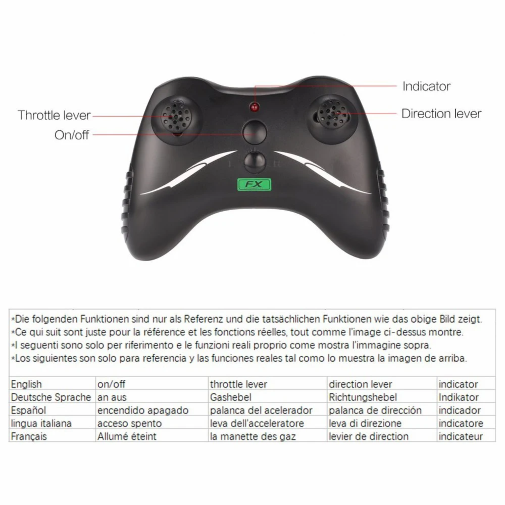 Название: RC самолет Модель: FX-820 Материал: Прочный EPP Пульт дистанционного управления: 2,4G 2CH Время полета: 15-20 минут Время зарядки: около 35 минут Аккумулятор самолета: 3,7 в, 300 мАч, Lipo аккумулятор Размер батареи: 32*20*7 мм Расстояние дистанционного управления: 120 м Батарея передатчика: 3 батарейки AA (не входят в комплект) Размах крыла: 290 мм Длина: 370 мм Высота: 90 мм Вес изделия: около 37 г