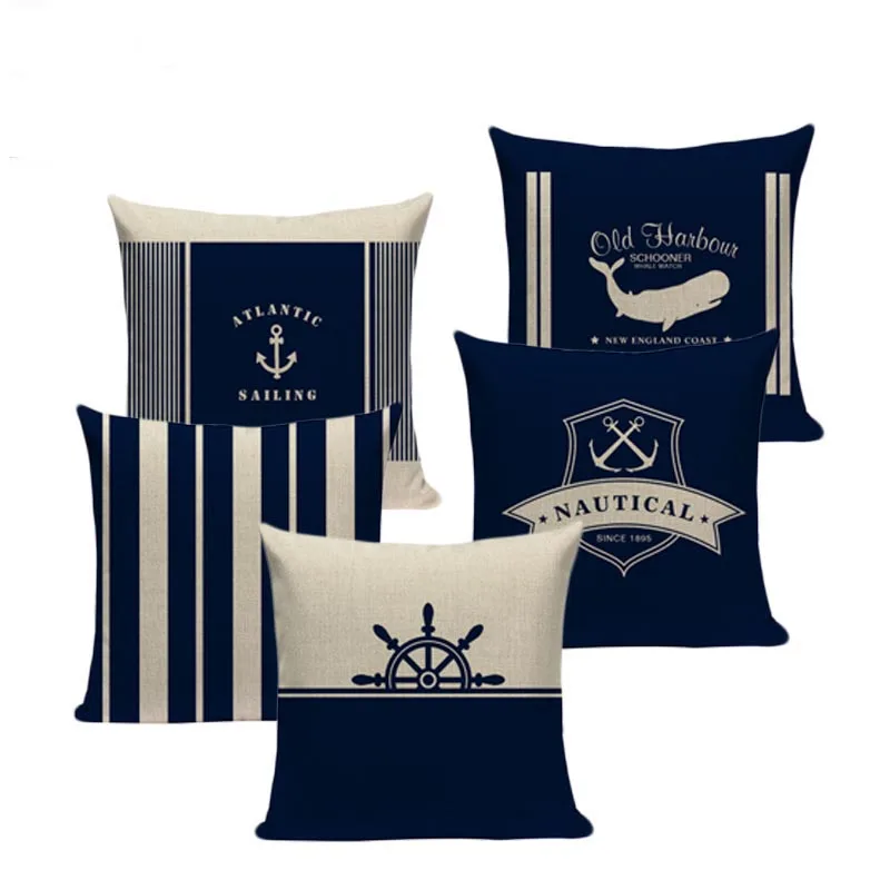Декоративные хлопковые наволочки в стиле ретро с рисунком морской т...
