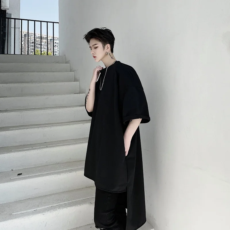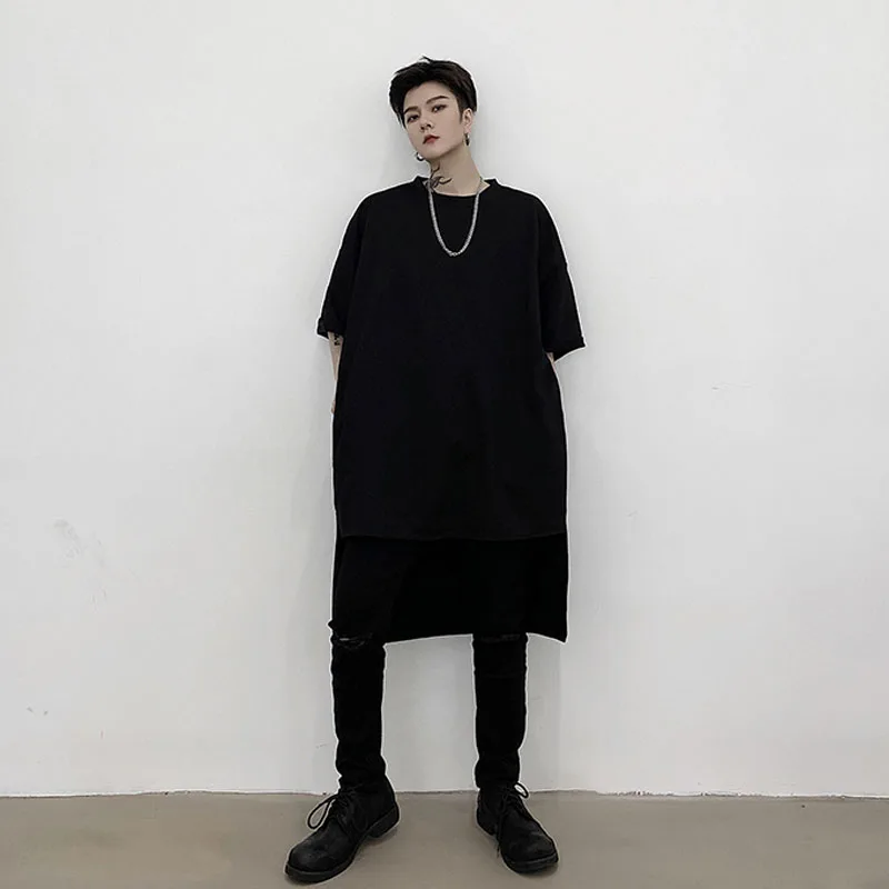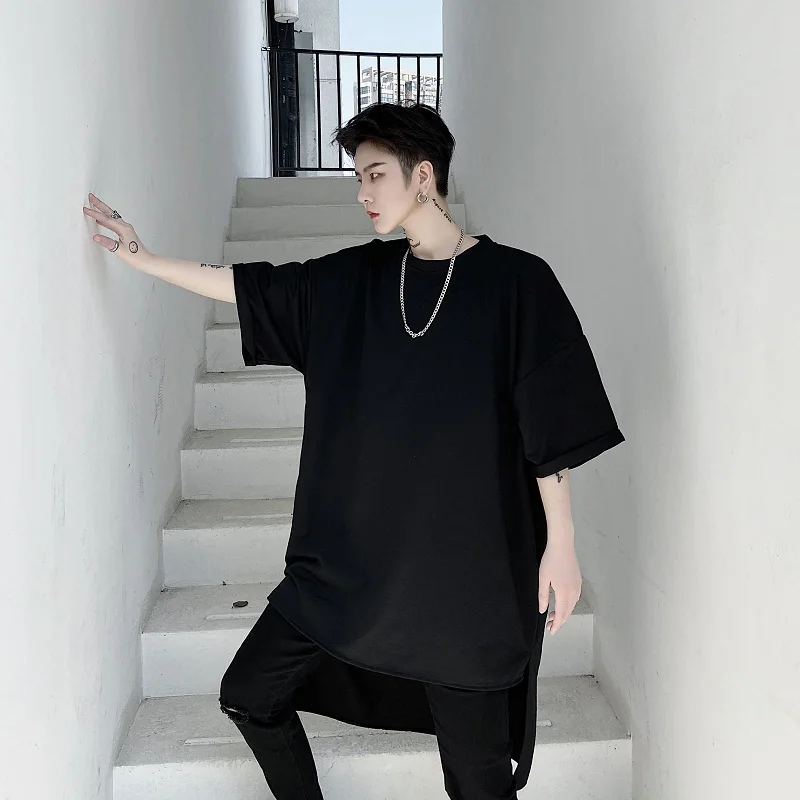 Футболка мужская с коротким рукавом, Повседневная Свободная длинная рубашка в стиле оверсайз, уличная одежда в стиле хип-хоп, панк, готика, на спине