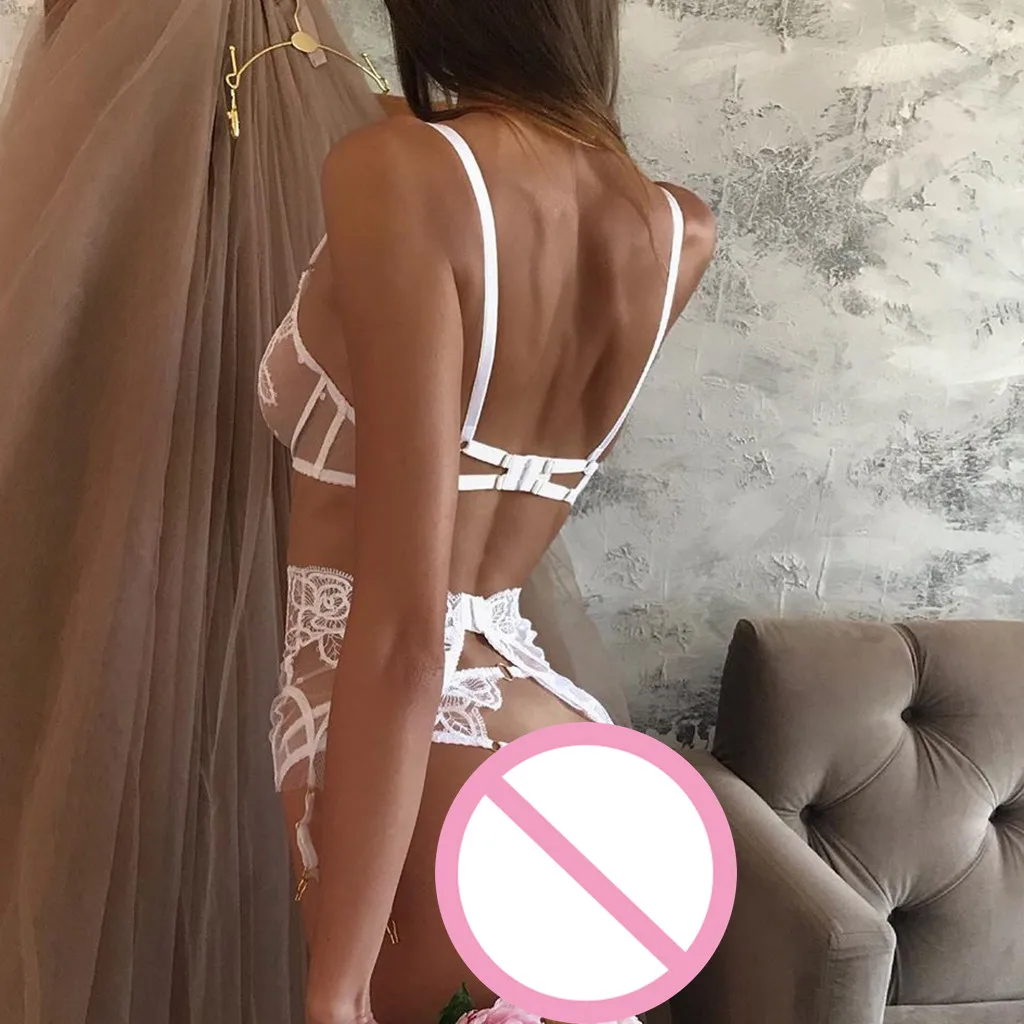 Сексуальное изысканное кружевное нижнее белье, комплект из бюстгальтера + подвязки + трусов, ночная сорочка с вырезами, нижнее белье, сексуальное эротическое нижнее белье, сексуальный костюм #4A04