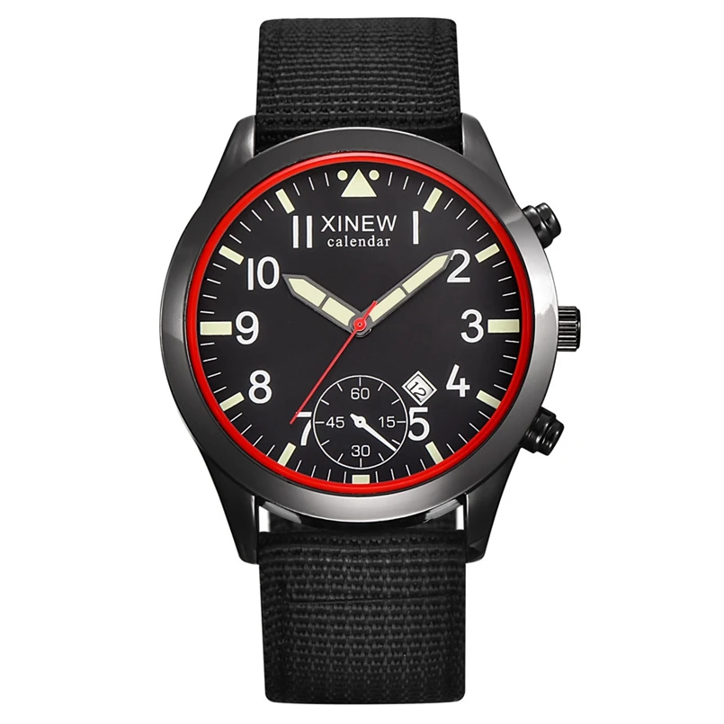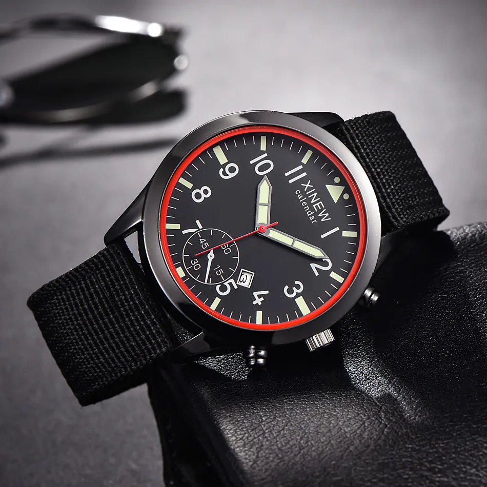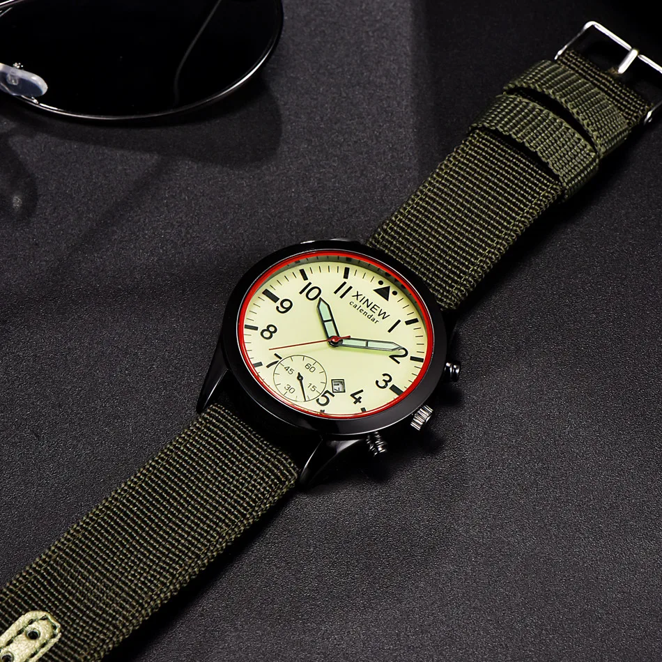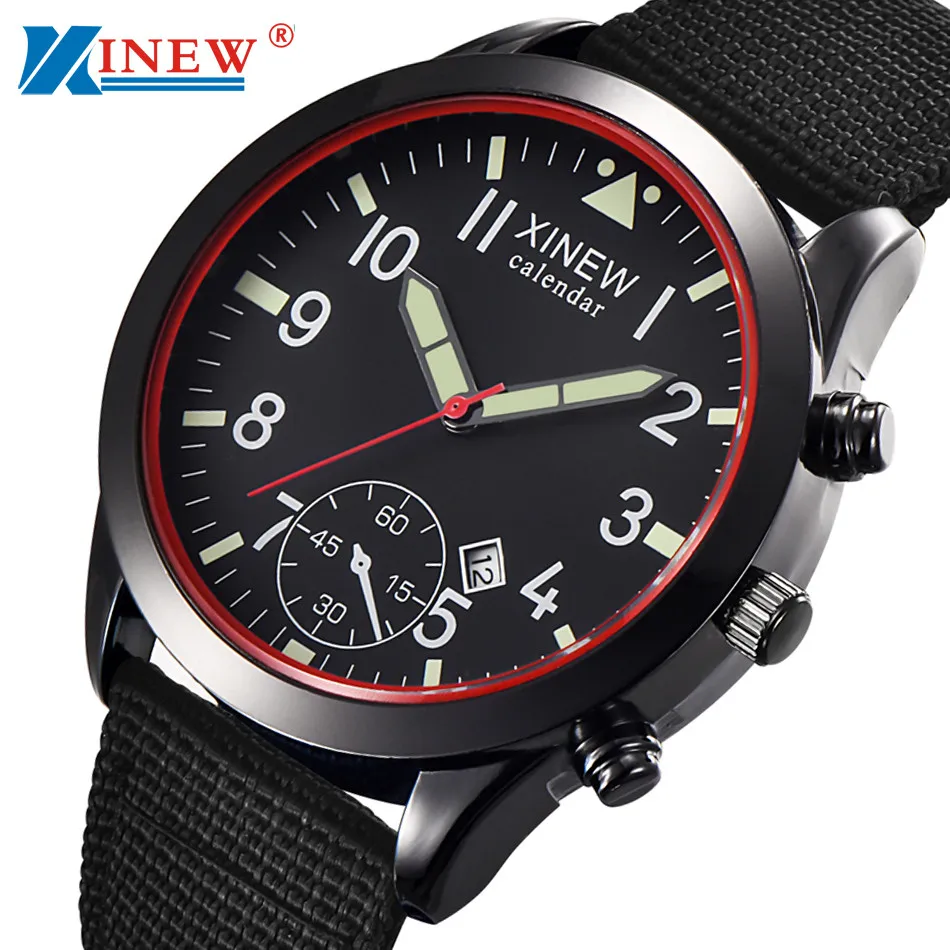 Мужские спортивные часы XINEW 2020, мужские часы, модные светящиеся кварцевые часы с календарем, армейские военные часы с нейлоновым ремешком