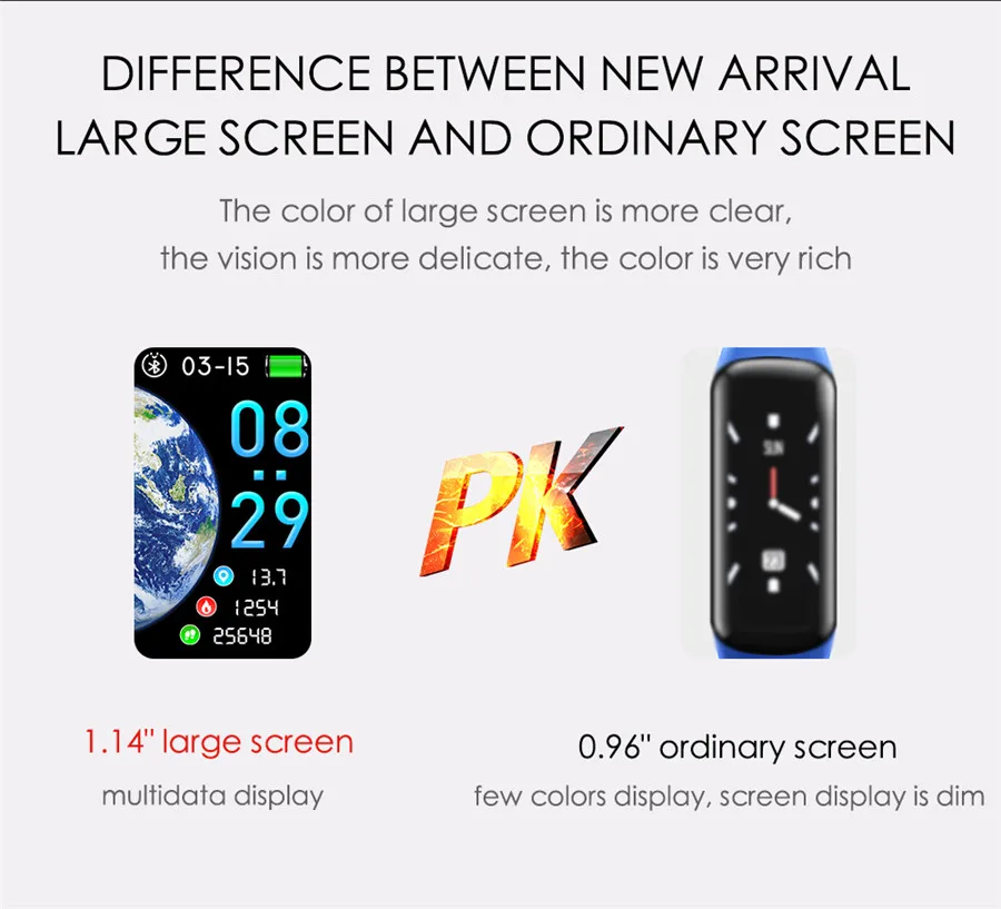 Особенности: 1. Мониторинг сердечного ритма, мониторинг артериального давления, мониторинг сна, напоминание о малоподвижности, всегда обращайте внимание на свое здоровье и дарите себе и своей семье гарантию здоровья. 2. Поддержка функции напоминания о женском физиологическом периоде, даже если работа слишком занята, вы не боитесь забыть. 3. Шагомер, шагомер, расстояние, калории, секундомер, обратный отсчет, напоминание о звонках (номер/имя звонящего), напоминание о сообщениях, напоминание о будильнике, напоминание о потере, напоминание о сидячем положении, фото с дистанционным управлением, поднимите яркий экран запястья и т. д., сделайте вашу жизнь проще. Нет GPS-модуля, поддержка GPS-трека. 4. Водонепроницаемость IP68, не боится пота, дождя. Вы чувствуете себя непринужденно, когда занимаетесь спортом. 5. Поддержка нескольких языков, Bluetooth 4,0 Описание: Операционная система приложения: Для IOS8.0 или выше, для Android 4,4 или выше Датчик Gsencor: KXTJ3-1057 Мастер: nRF 52832 Датчик сердечного ритма: Yiguang PD70-01C-TR7 Напоминание о вибрации: напоминание о вибрации двигателя Класс водонепроницаемости: IP68 Дисплей: 1,14 "135*240 Разрешение TFT Bluetooth: BLE 4,0 Материал ремешка: силиконовый ремешок Размер хоста: около 47*24*13 мм/1,85*0,94*0,51 дюйма Размер машины: около 260*24*13 мм/10,24*0,94*0,51 дюйма Управление: одним касанием, поднимите экран запястья будет ярким. Аккумулятор: полимерный литий-ионный аккумулятор Емкость аккумулятора: 100 мАч Время работы в режиме ожидания: 7-10 дней Способ зарядки: магнитный кабель для зарядки Время зарядки: около 2 часов Поддерживаемые языки: китайский, английский, немецкий, русский, японский, французский, корейский, португальский, испанский, итальянский, персидский, вьетнамский. Комплектация: 1 * умный Браслет 1 * кабель для зарядки 1 * Инструкция по эксплуатации