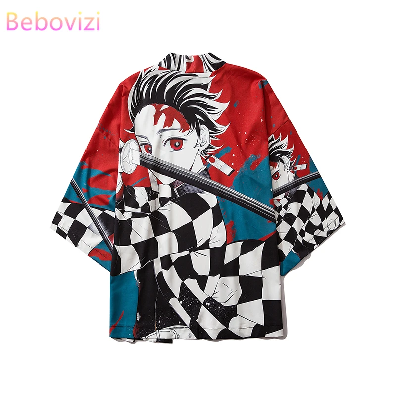 Японское кимоно с аниме-принтом, кардиган, мужское летнее женское к...