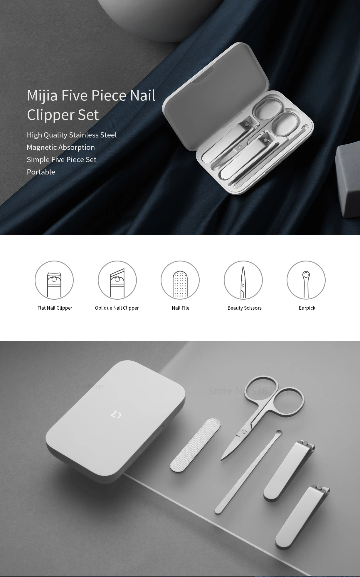 5 шт., Машинка для маникюра и педикюра XIAOMI Mijia, нержавеющая сталь