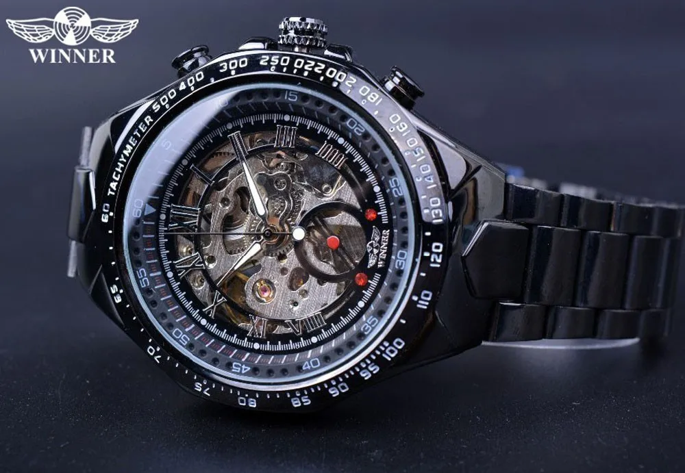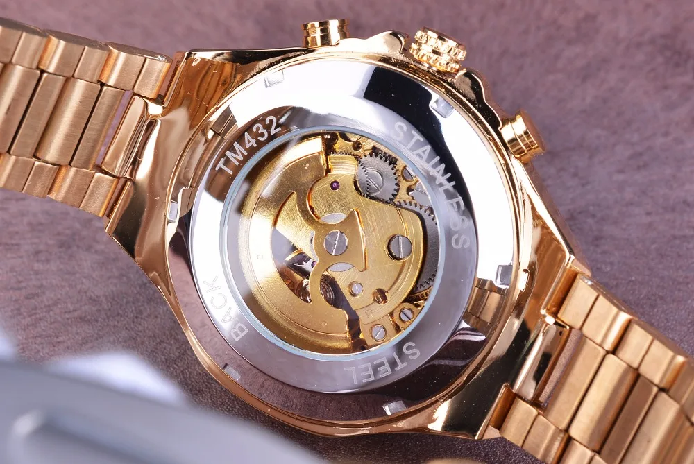 Часы наручные Winner Мужские механические, спортивные дизайнерские золотистые брендовые Роскошные автоматические часы-скелетоны