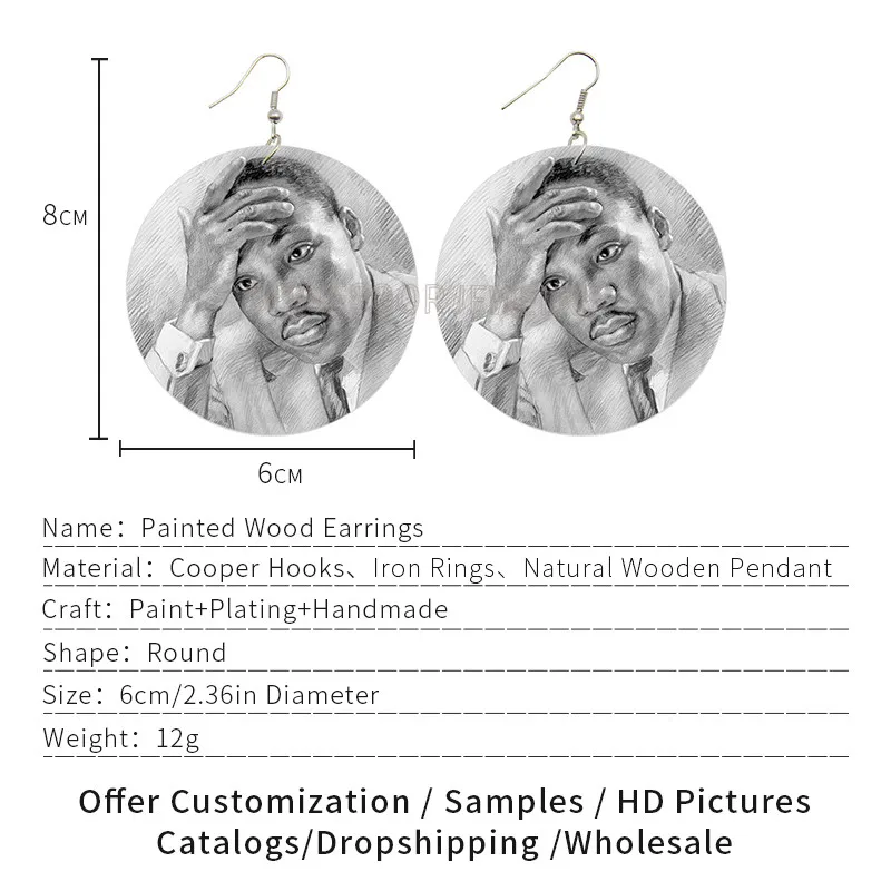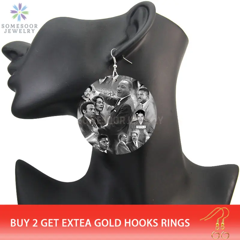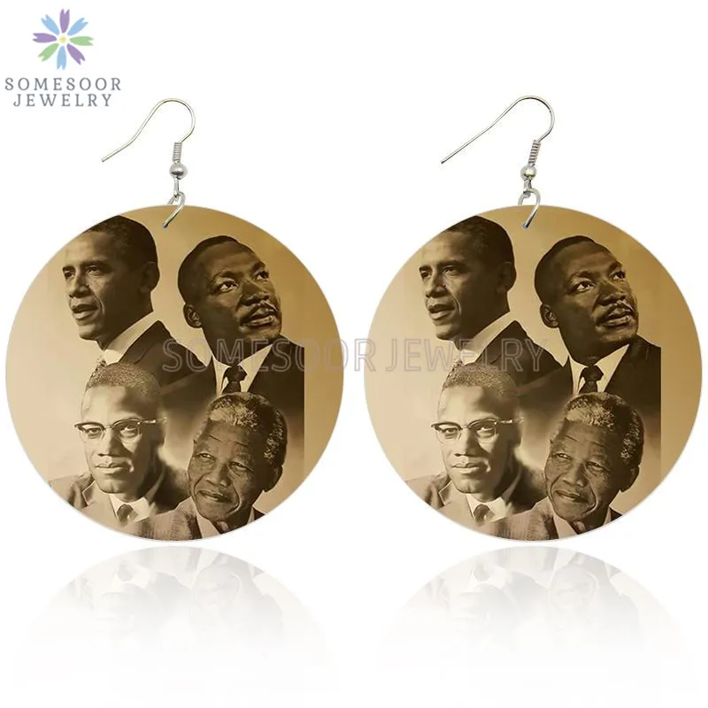 SOMESOOR черная история, художественные африканские деревянные висячие серьги с принтом известных лидеров Martin Luther King Обама, будделы для женщин