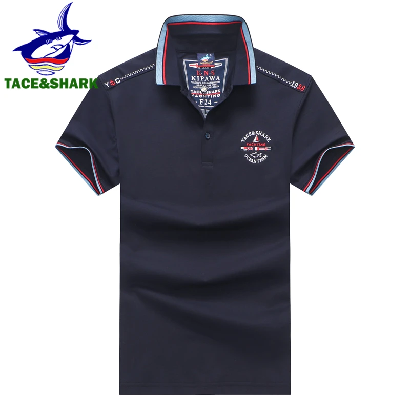 Новое поступление 2020, брендовая повседневная одежда TACE SHARK, рубашка-поло с вышивкой акулы, Мужская однотонная модная серая деловая поло с акулами