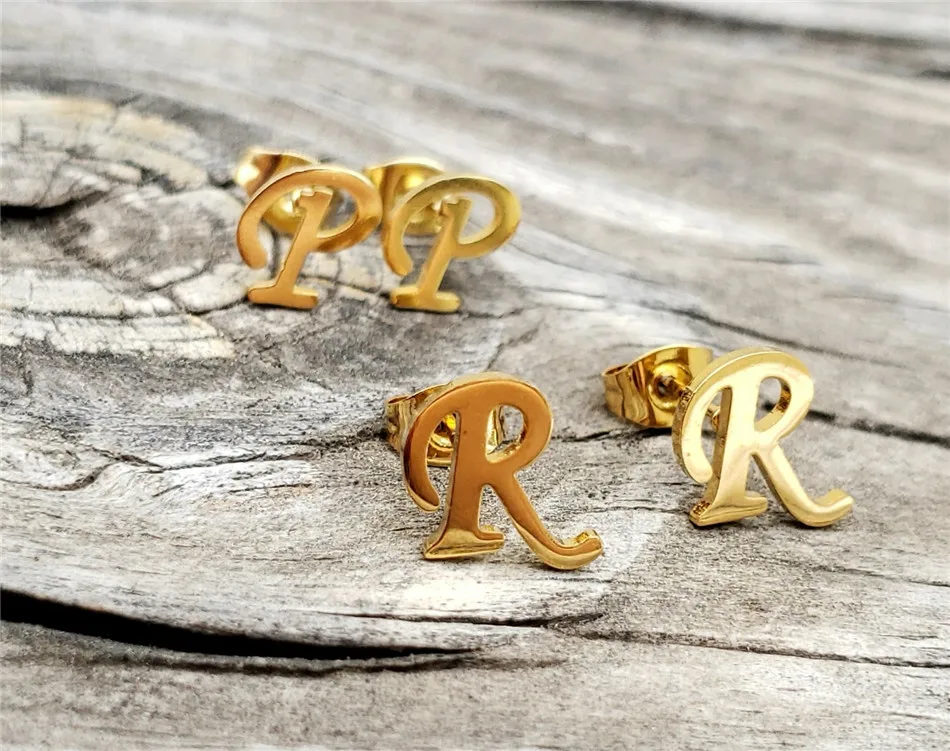 Оптовые серьги-гвоздики с буквами, золотые серьги-гвоздики из нержа...