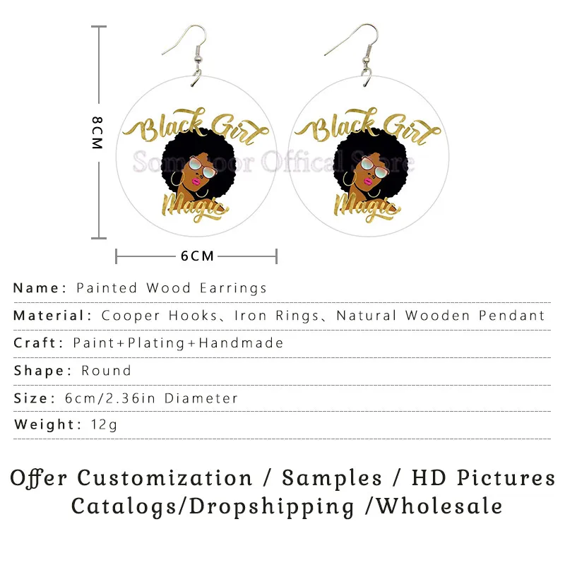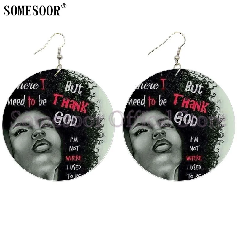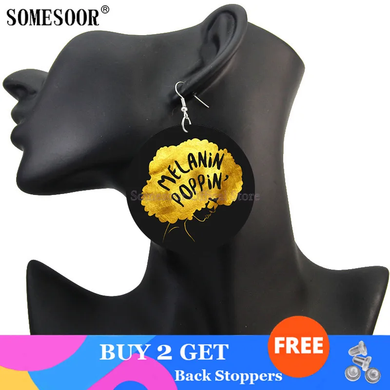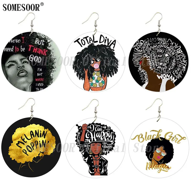 SOMESOOR меланин Poppin Total Diva афро натуральные волосы деревянные висячие серьги Черная Девушка Волшебные с обеих сторон Печатные для женщин Подарки