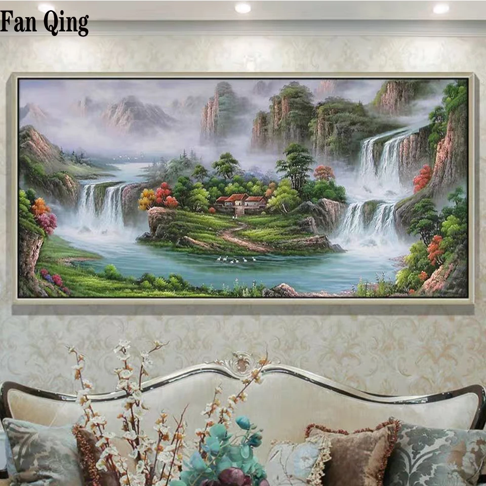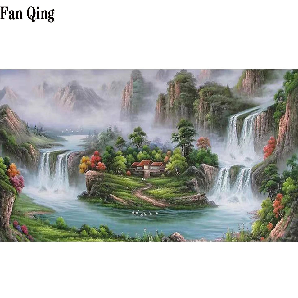Full Square/round diamond Pictures Mountain and River Hut 5D Cross stitch Rhinestone Mosaic Diamond Painting Home Decoration