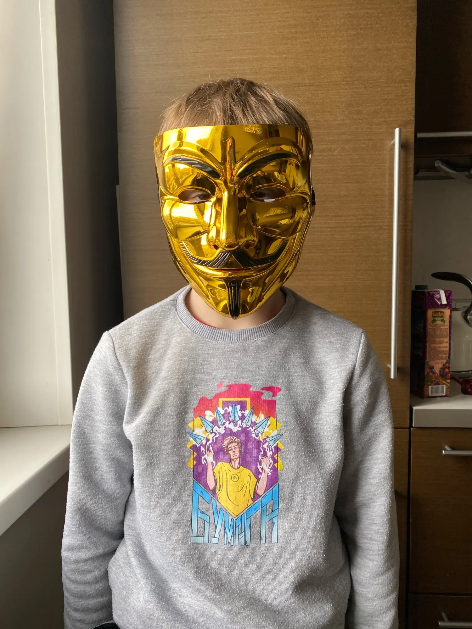 отличная маска но чёрно золотая из другого (в лучшую сторону) материала. Взломал жопу собаки 5 звёзд