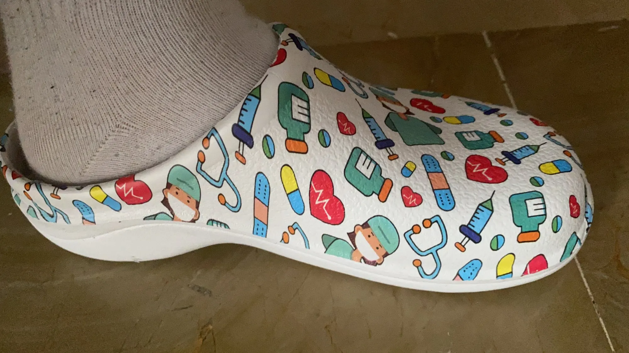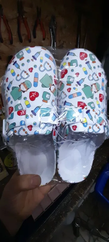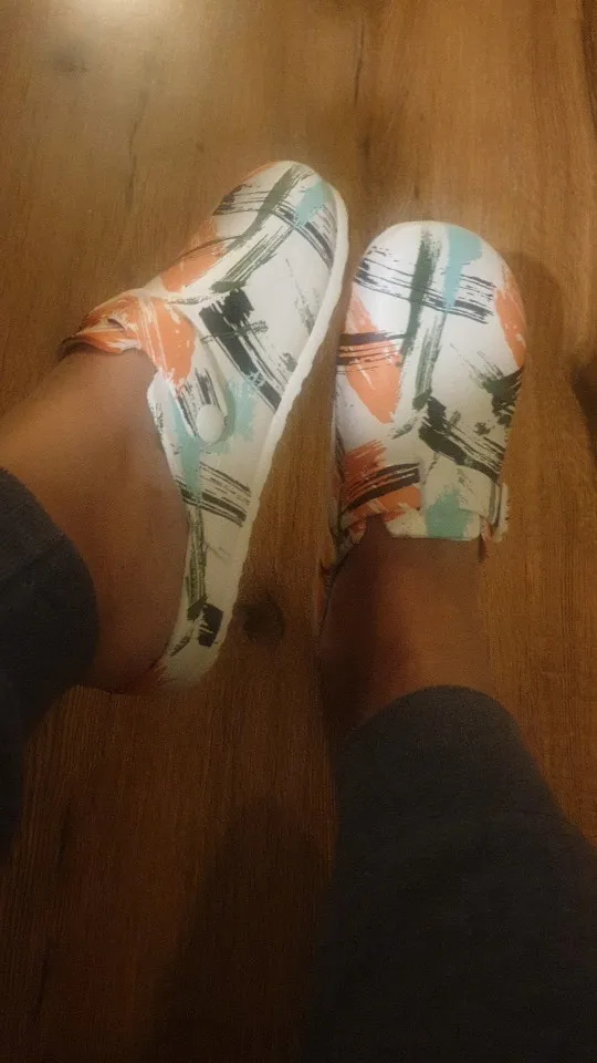 наконец то пришли... и немного разочаровали.. качество не очень... материал похрж на пенопласт... думаю за месяц сношу и они сотрутся(( у продавца на фото выглядили лучше... в такое обуви убодно ходить в душ, но не на 24 часовую смену. с продавцом не общалась