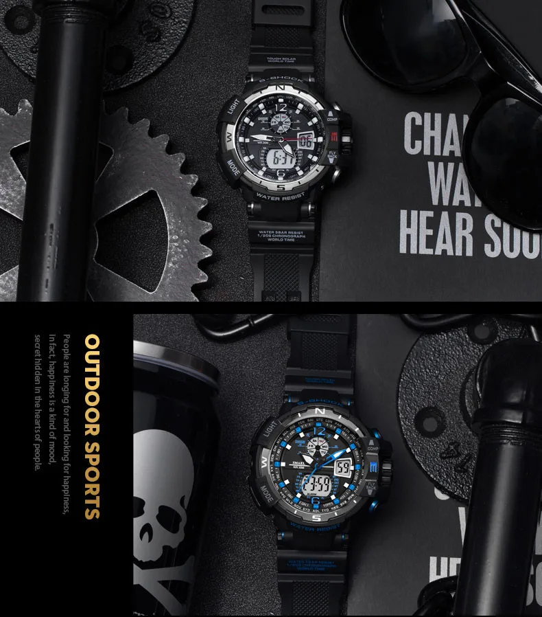 Часы наручные SMAEL Мужские кварцевые Светодиодные, спортивные цифровые брендовые люксовые, 2020