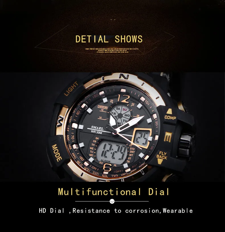 Мужские наручные часы SMAEL, спортивные цифровые кварцевые часы со ...