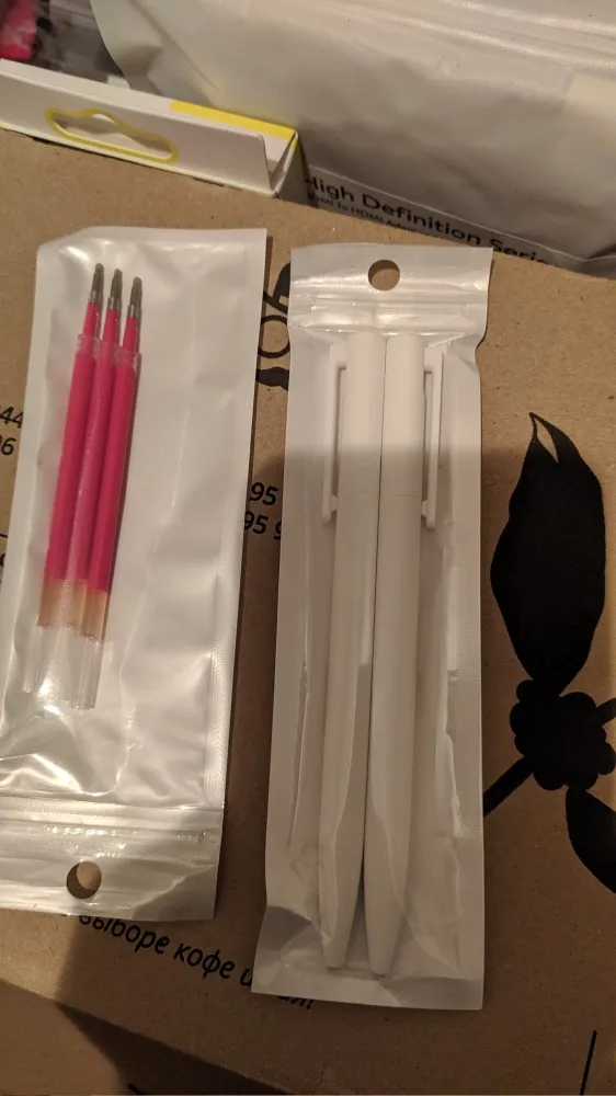 Товар пришел по качеству не плохой, заказывал синии пасты они пришли а в ручках были черные, но нечего пишут просто прекрасно.