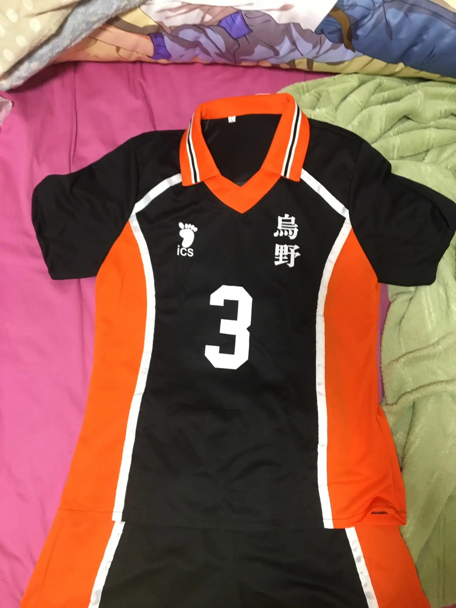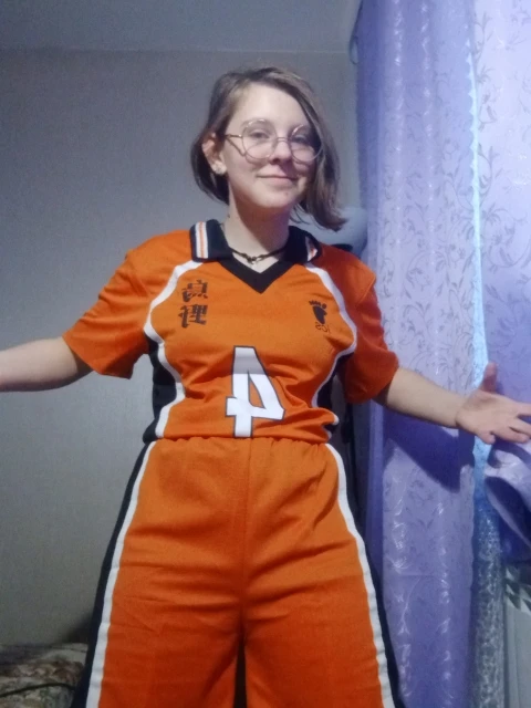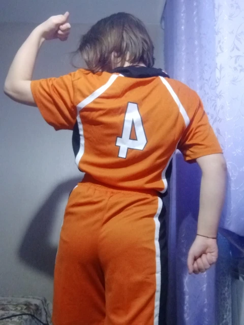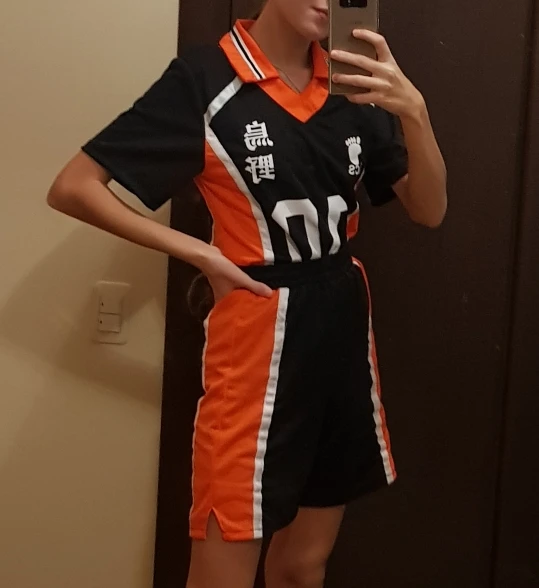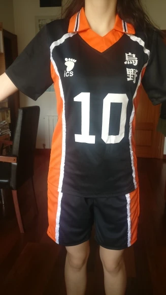 Я люблю этот косплей! Я взял Азиатский размер М, потому что я делаю французский размер S. Размер превосходен! Футболка немного туго для меня на бедрах, но это не раздражает. Материал превосходен, воздушный, как настоящий спортивный наряд. Есть резинка, чтобы затянуть шорты, если это необходимо. Я действительно доволен!