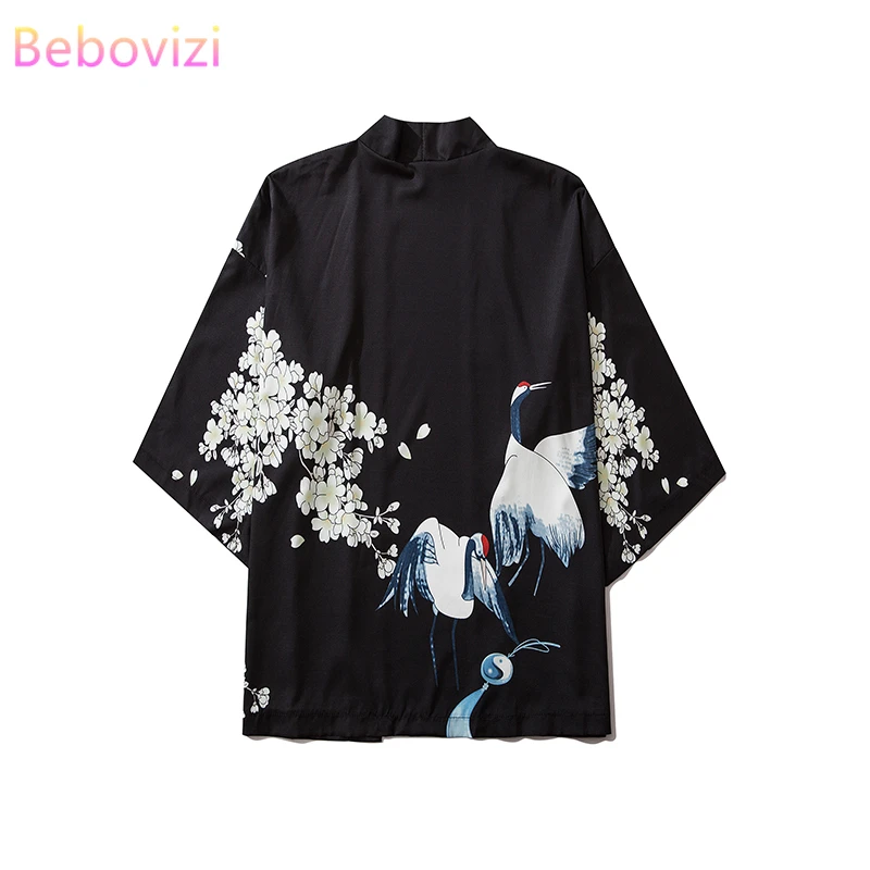 Кимоно женское, мужское, черное, с принтом Феникса, Харадзюку, япон...
