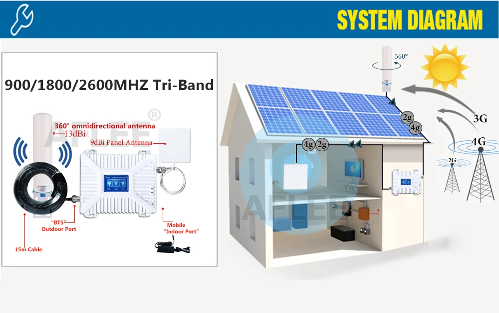 Этот усилитель работает для Band8)900 МГц/Band3)1800 МГц/Band7)2600 сигнал. Только частота соответствует, усилитель может работать. Пожалуйста, проверьте, какой диапазон вашего мобильного телефона используется, прежде всего, с помощью следующих способов: