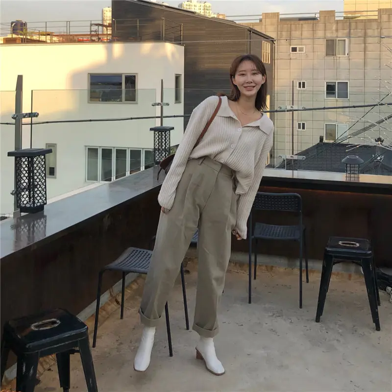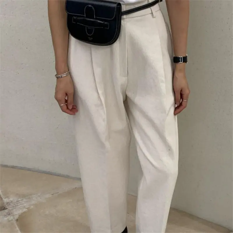 Повседневные плиссированные однотонные текстурные карманы HziriP с высокой талией 2020 Новинка для отдыха офисные женские свободные универсальные брюки-карандаш большого размера