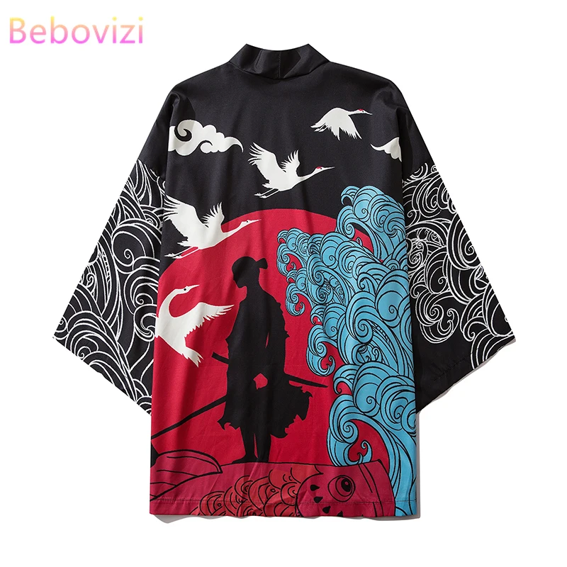 Японский кардиган-кимоно Ukiyo-e Samurai Robe Crane Supreme Bodhi, ...