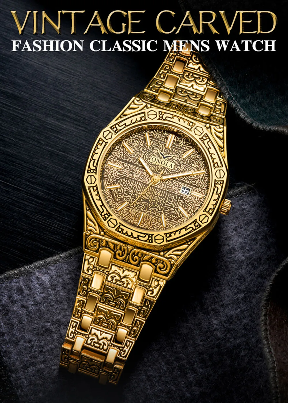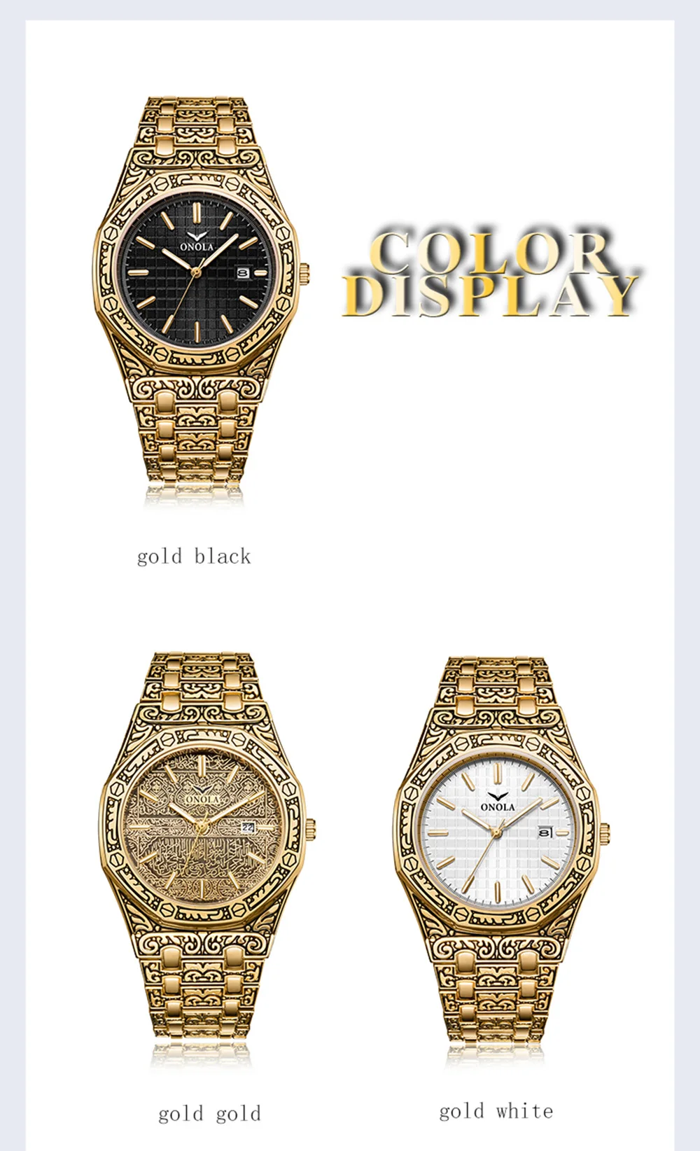 Часы наручные ONOLA мужские водонепроницаемые, брендовые винтажные модные повседневные роскошные золотистые, с браслетом из стали