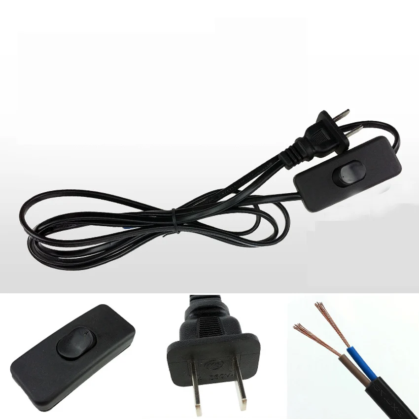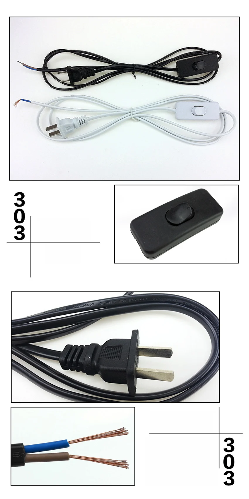 Энергосберегающий светодиодный светильник, черный, белый, ЕС, США, 2c * 0,75 мм, 1,8 м, 303, шнур питания с переключателем, 250 В, ПВХ, медь