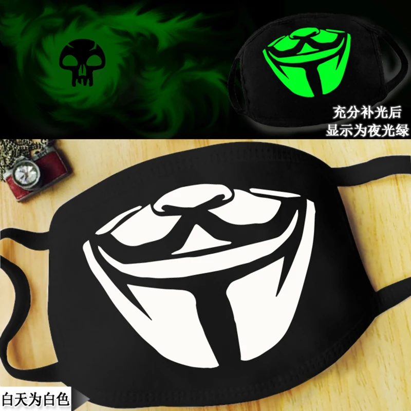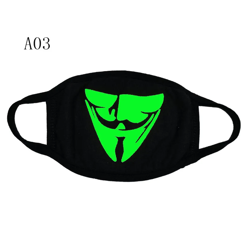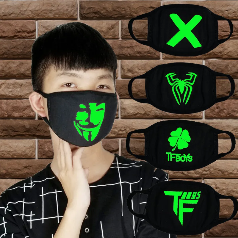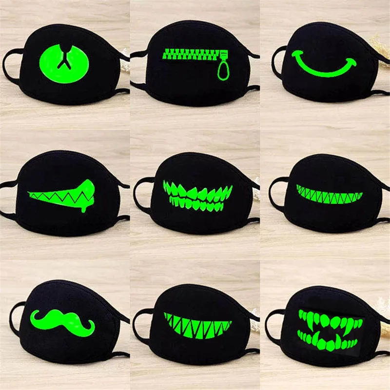 Светящаяся хлопковая маска для лица со смешным улыбающимся выражением против пыли для рта, черная маска унисекс для лица, маска-Приглушение для рта, модная новинка