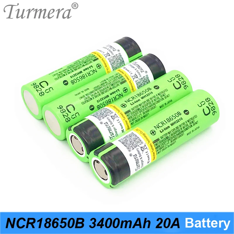 Оригинальный аккумулятор Turmera 18650 3400 мАч 3,7 в NCR18650B, аккумулятор с высоким током разряда для шуруповерта, шуры, Шурика, электронной сигареты, аккумулятора для электронных велосипедов