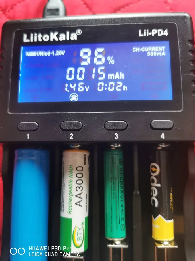 NiMH зарядный ток аккумулятора:500мА * 4/700мА * 4/1000мА * 4