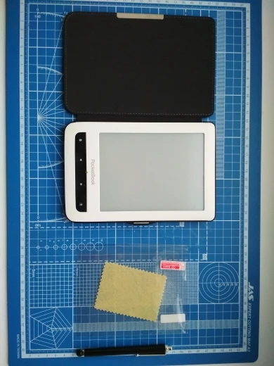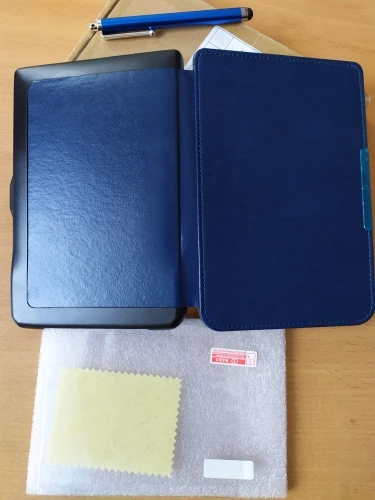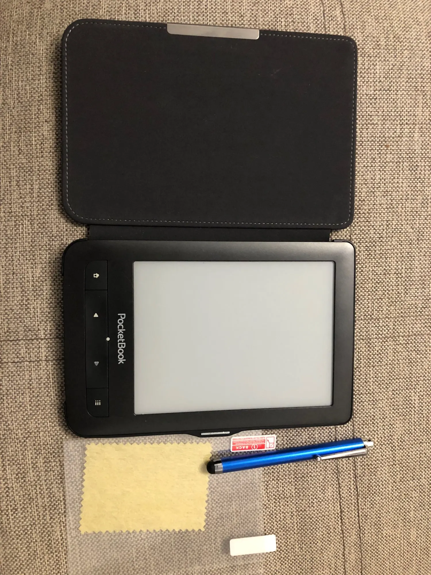 Все соответствует описанию и фотографиями. На мой Pocket Book 622 сел идеально. Защитную пленку наклеила, но она бликует, и книге уже 7 лет, поэтому села не идеально, пришлось отклеить. стилус хорош, но я им не пользуюсь.