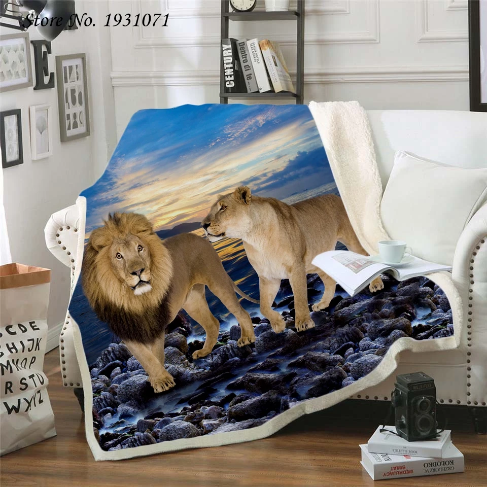 Одеяло из шерпы с 3D принтом Король Лев, покрывало для дивана, доро...