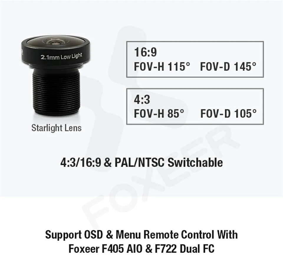 Камера Foxeer Mini Micro cat 2 V2 с датчиком 13 дюйма 16:94:3 PN и...