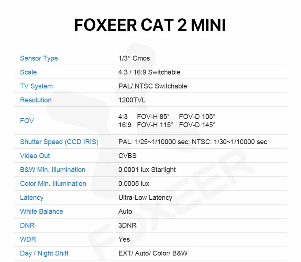 Foxeer Mini Micro cat 2 V2 vol de ночь, слабые latence 13 ''датчик...