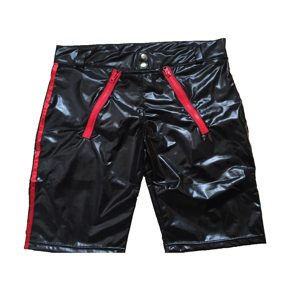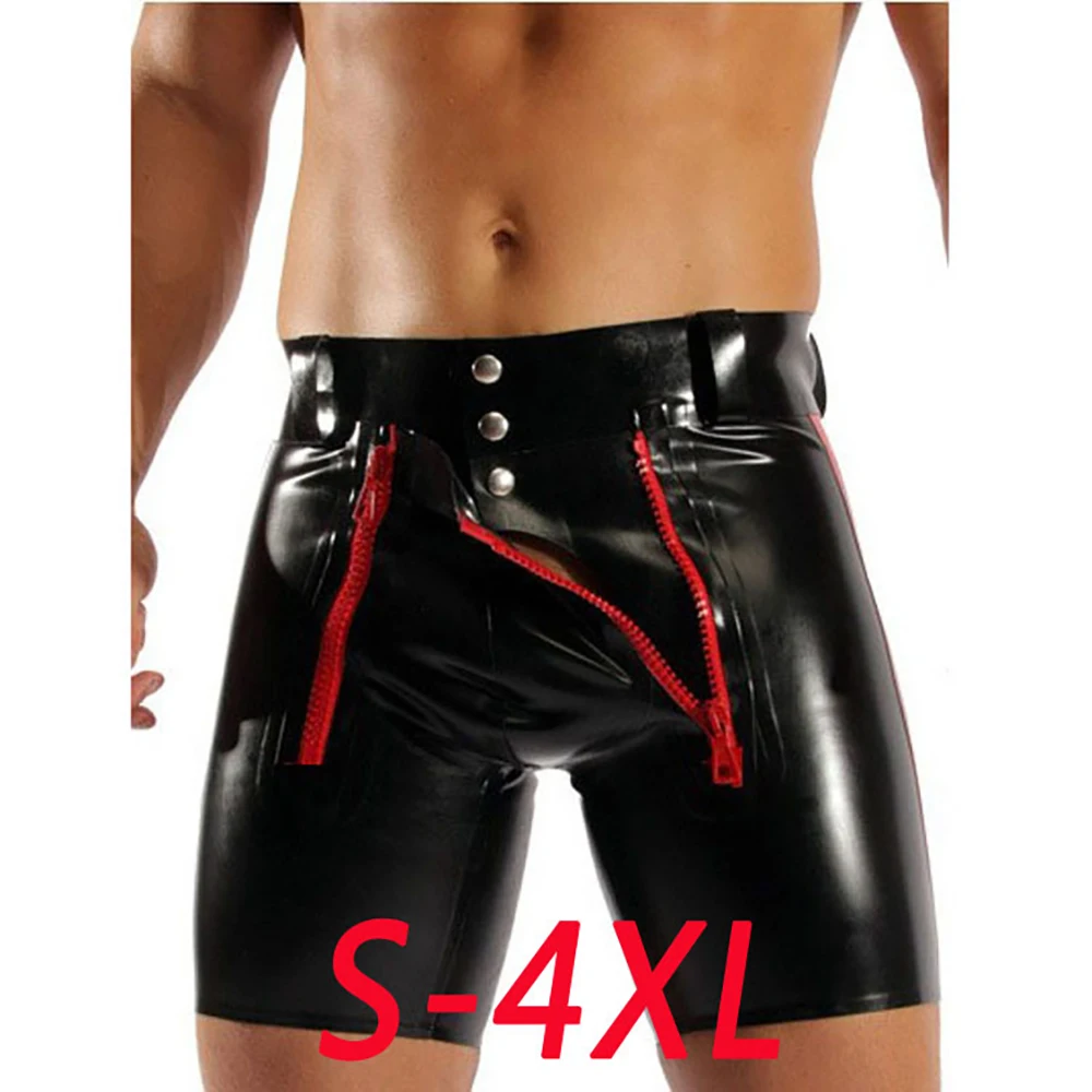 Размера плюс 4XL Для мужчин нижнее белье Мужские Шорты для купания трусы-боксеры мужские латексные ПВХ с открытой промежностью молния шорты-боксеры гей клуб Искусственная кожа короткие штаны