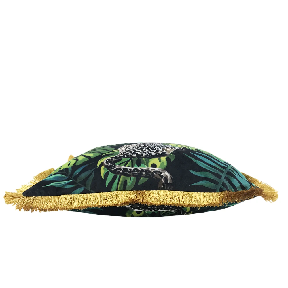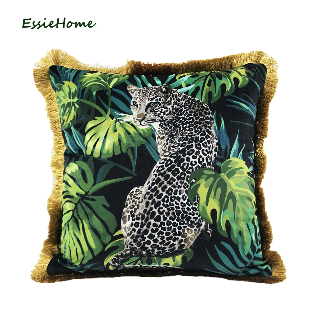 ESSIE HOME тропический животный узор Ягуар Леопардовый цифровой принт бархатная наволочка чехол с золотой кисточкой