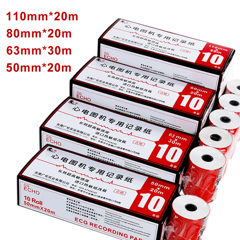 Медицинская Бумага для электрокардиограммы 80 мм, с 3 выводами, 60 г целлюлозной бумаги, 20 метров (10 рулонов)