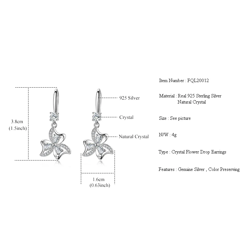 Женские серьги-подвески Fanqieliu, из стерлингового серебра 925 пробы, с кристаллами, свадебные ювелирные украшения, FQL20012