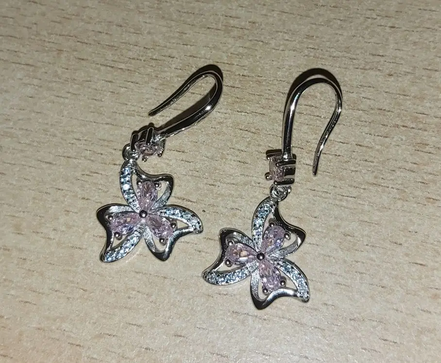Очень нежные сережки. Нет фиксации на застежке, но держатся хорошо. Не крупные, не тяжелые.