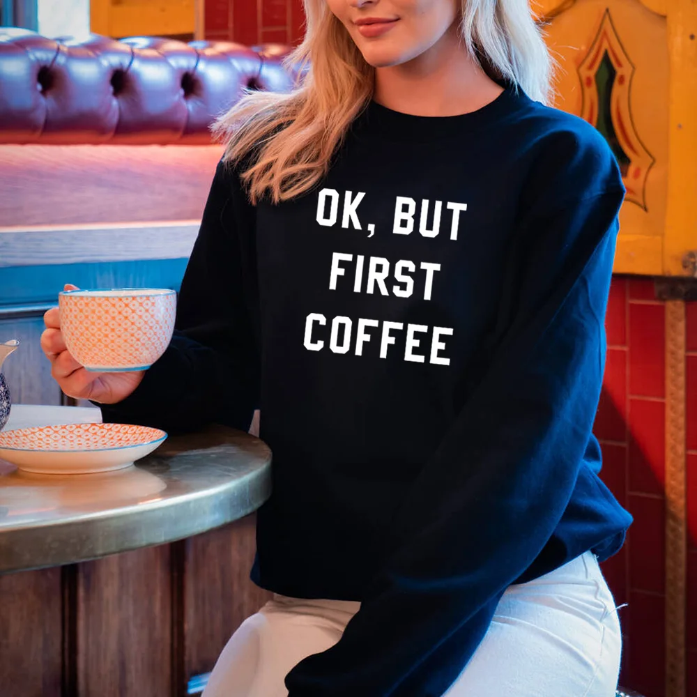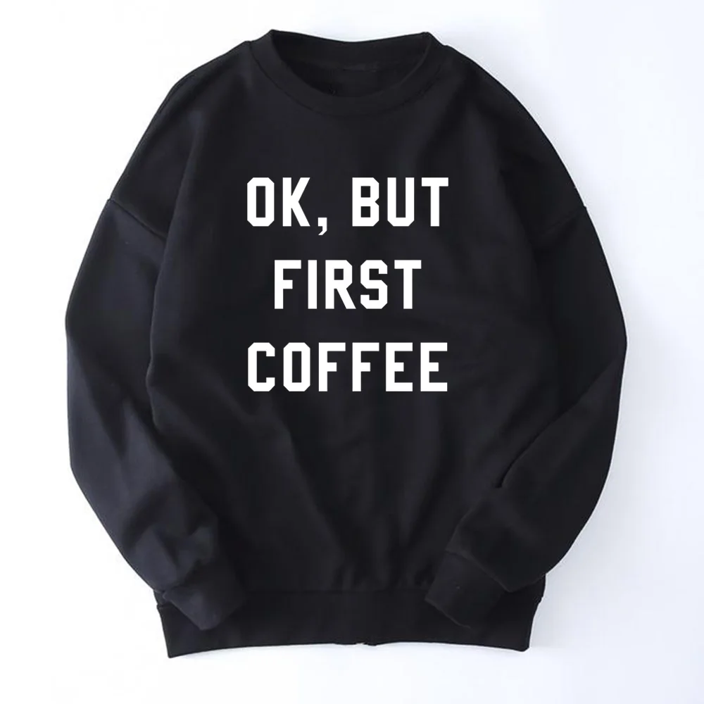 Женский пуловер с буквенным принтом, винтажный топ с начесом, ОК, но сначала кофе