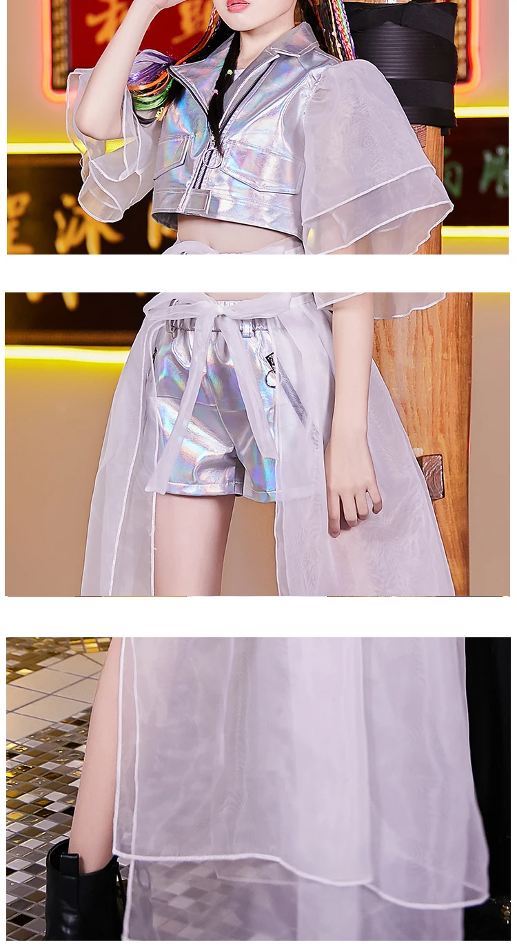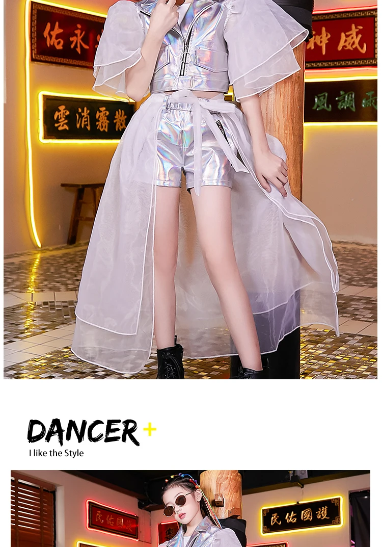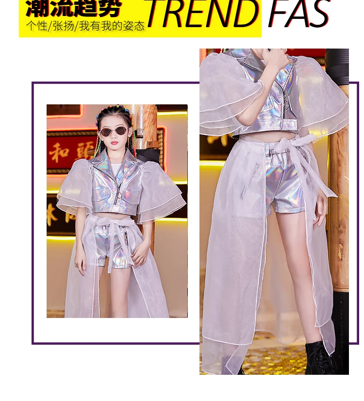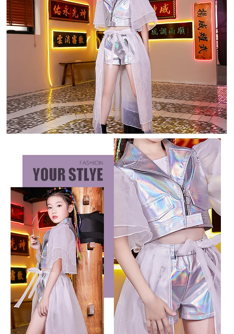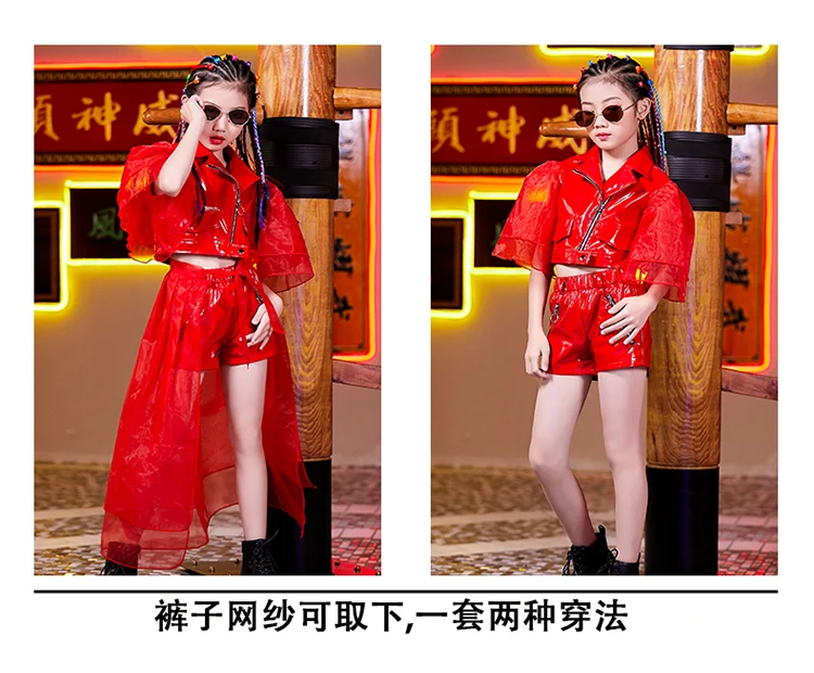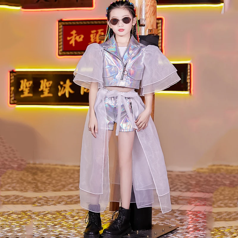 Модный детский костюм серебристого и красного цвета детская одежда для выступлений в стиле хип-хоп для девочек