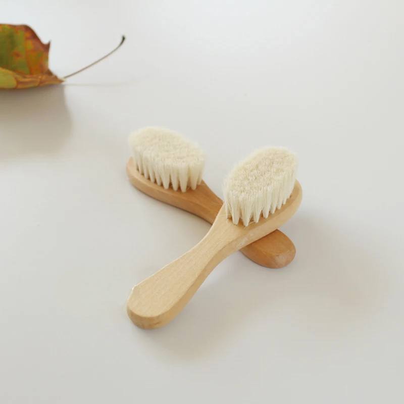 Мягкая Детская щетка и Расческа с деревянной ручкой и натуральной щетиной из козьей шерсти, идеально подходит для новорожденных малышей