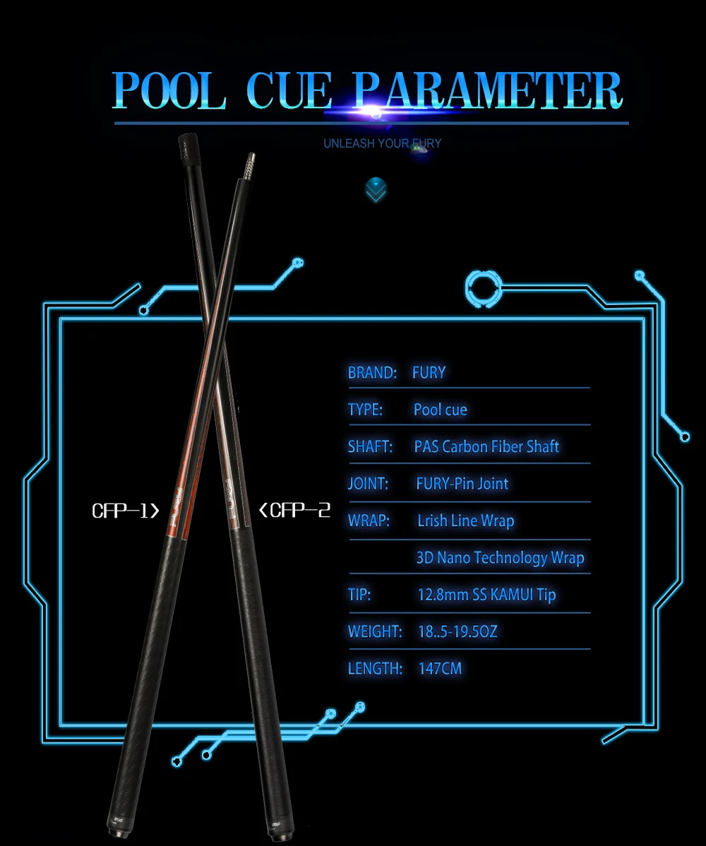 Официальная фурия CFP бильярдный черный технология бильярдный кий 12,512,8 мм Kamui наконечник PAS стержень из углеродного волокна профессиональный набор бильярдных стиков