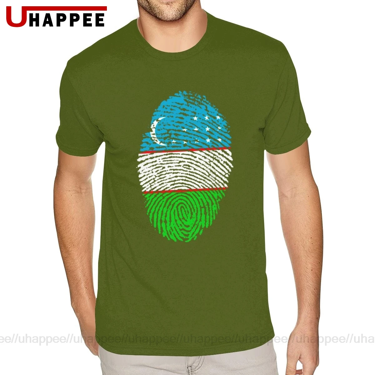 Мужская хлопковая футболка с короткими рукавами и круглым вырезом, милая флаг Узбекистана Футболка с принтом отпечатков пальцев
