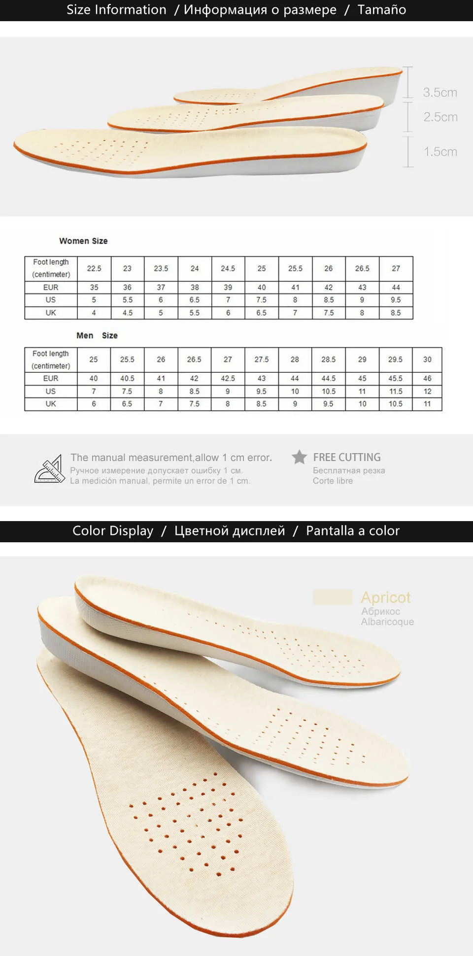 Стельки для обуви, увеличивающие рост, 1,52,53,5 см; Женская и мужская обувь, увеличивающая рост; Удобные стельки для ухода за ногами